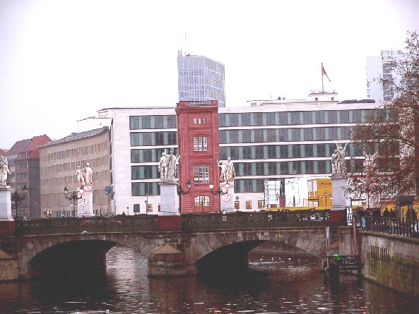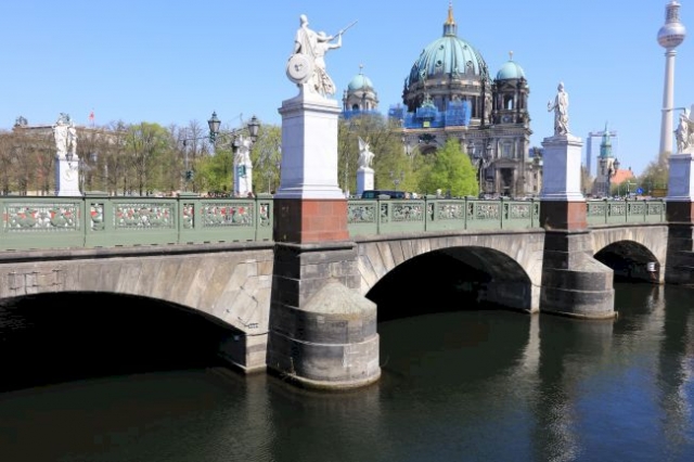 Die Schloßbrücke trug 1951–1991 den Namen Marx-Engels-Brücke. Die Brücke steht mit den Allegorien unter Denkmalschutz. (Info von www.luise-berlin.de)