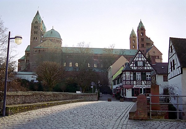 vor dem Dom zu Speyer (seit 1980 in der Liste der UNESCO-Weltkulturerbe)