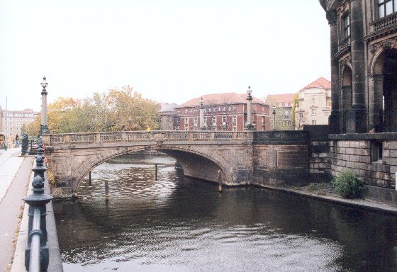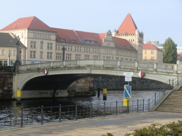 Mitte (Dorotheenstadt/Spandauer Vorstadt), verbindet die Straße Am Kupfergraben mit der Monbijoustraße an der Stelle, an der die Spree und der Kupfergraben wieder eins werden. 1776 wurde eine hölzerne Jochbrücke gebaut, die den Namen Kleine Weidendammer Brücke, später Mehlbrücke trug. An deren Stelle trat die 1903/04 von Ernst von Ihne errichtete M., benannt nach Park und Schloß Monbijou. Die Brücke besteht aus zwei Teilen. Durch den einen wird der Kupfergraben und durch den anderen die Spree überspannt. Der Scheitelpunkt der Brücke liegt vor dem Haupteingang des Bodemuseums. An der Spreeseite beträgt die Breite der Brücke 14 m, am Kupfergraben 15 m. Im II. Weltkrieg wurde der spreeüberspannende Brückenteil von deutschen Truppen gesprengt, 1950 provisorisch wiederhergerichtet. 1968 ist der südlich den Kupfergraben überspannende Brückenteil, der im zweiten Weltkrieg unbeschädigt blieb, rekonstruiert worden. Die Brücke steht unter Denkmalschutz. (Infos von www.luise-berlin.de)