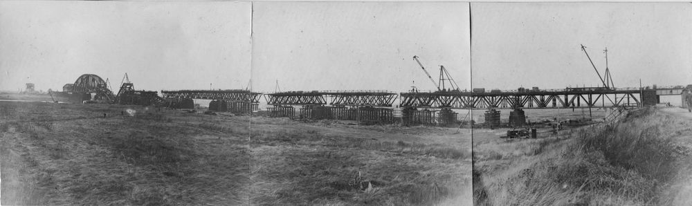 Die Brücke wurde 1912 für den Güterverkehr eröffnet. Personenzüge fuhren erst seit 1929 über die Brücke. Am Ende des Zweiten Weltkriegs wurde die Brücke gesprengt. Mit Hilfe britischer Pioniere wurde sie bereits ab 1945 in alter Form mit ihrer charakteristischen Fachwerkbalkenkonstruktion wiederaufgebaut und im Februar 1946 dem Verkehr übergeben.