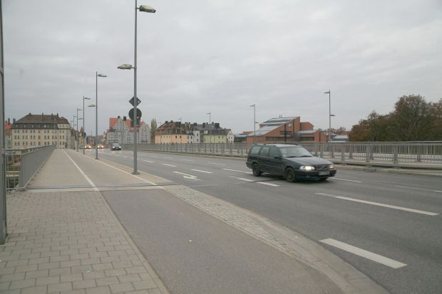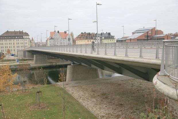 Wikipedia: Die Nibelungenbrücke besteht aus zwei Straßenbrücken, die bei Flusskilometer 2378,39 zwei Donauarme in Regensburg überspannen. Die heutige Konstruktion wurde zwischen 2001 und 2004 gebaut, da die alte Brücke, welche zwischen 1935 und 1938 errichtet wurde, für das gestiegene Verkehrsaufkommen nicht mehr ausreichend war. Sie ist mit durchschnittlich 42.000 Fahrzeugen pro Tag eine der wichtigen Donaubrücken im Großraum Regensburg.