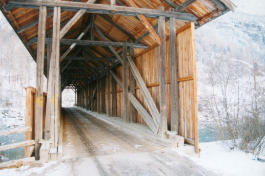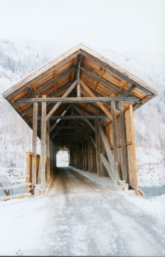Balkenbrücke, gedeckte Holzbrücke, Covered Bridge, Sprengwerk