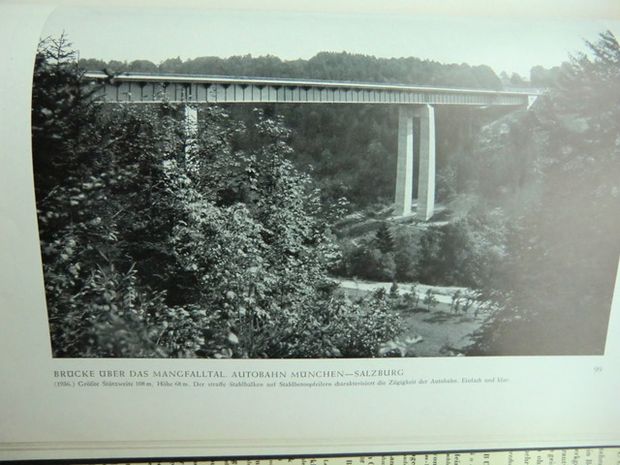 Der im freien Vorbau errichtete Überbau besteht aus zwei 6,60 m hohen Spannbeton-Fachwerkträgern mit einer längs- und quervorgespannten Fahrbahnplatte von 23,5 m Breite. Im Unterdeck der Konstruktion ist nach Art einer doppelstöckigen Brücke ein Geh- und Radweg angeordnet. Das Bauwerk überspannt das Mangfalltal in einer Höhe von etwa 63 m mit Stützweiten von 90 + 108+ 90 = 288 m. Die Gesamtkosten betrugen einschließlich des Neubaus der Rad- und Gehweganschlüsse rd. 7,3 Mio DM. Neben der Fachwerkkonstruktion ist ein einfacher Hohlkasten-Spannbetonbalken für die Erweiterung der Autobahn errichtet worden.