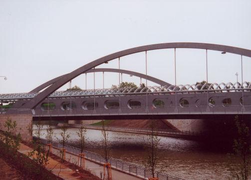 Bogenbrücke, Bogen über der Fahrbahn