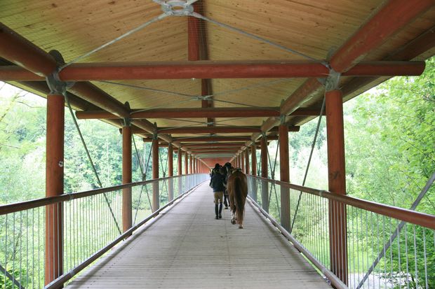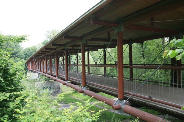 gedeckte Holzbrücke
