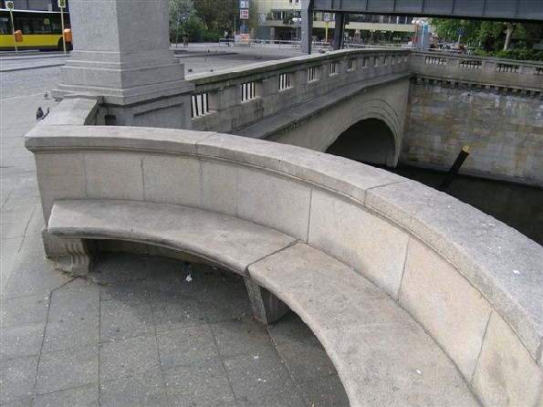 Die Hallesche-Tor-Brücke befindet sich am Hochbahnhof Hallesches Tor und verbindet Hallesches Ufer und Tempelhofer Ufer/Waterlooufer über den Landwehrkanal. Der 1705 schiffbar gemachte Schafgraben wurde an dieser Stelle von einer Holzbrücke überquert. Mit dem Ausbau des Landwehrkanals wurde 1850 eine hölzerne Klappbrücke gebaut, die nach dem Tor der Akzisemauer bis 1874 H. hieß. Johann Heinrich Strack (1805–1880) entwarf eine neue Brücke, die unter Leitung von Erich Dietrich von 1874 bis 1876 entstand und den Namen Belle-Alliance-Brücke erhielt. Die Korb-Bogenbrücke hatte eine Spannweite von 18,80 m und war mit 33,60 m seinerzeit die breiteste Berliner Brücke. Verkleidet wurde die Klinkerbrücke mit Sandstein. Das Granit-Geländer erhielt vier Postamente mit allegorischen Figuren die Schifffahrt von Otto Geyer (1843–1914) und der Fischfang von Julius Moser (1832–1916) sowie der Gewerbefleiß von Eduard Luerssen (1840–1891) und der Fruchthandel (auch Marktverkehr genannt) von Friedrich Reusch(1843–1906). Vier Medaillons mit Handels- und Industriemotiven schmückten die wasserseitigen Ansichtsflächen der Brücke. Nach Kriegsbeschädigungen wurde die Brücke 1953 in den alten Formen neu erbaut und trägt seitdem wieder den Namen H. 1989 wurden die Skulpturengruppen Flussschifffahrt und der Fischfang wieder aufgestellt. Die Skulpturengruppe Fruchthandel wurde im Krieg zerstört, der Verbleib der Gruppe Gewerbefleiß und der Medaillons ist ungeklärt. Ein Schlussstein mit Neptunkopf wurde 1972 in eine Wand des Tegel-Centers eingelassen.