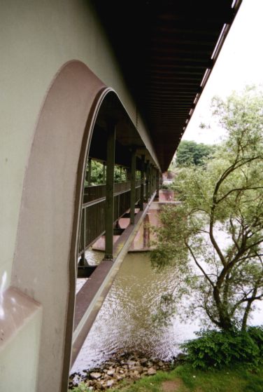 Balkenbrücke, mit abgehängtem Fußweg