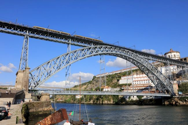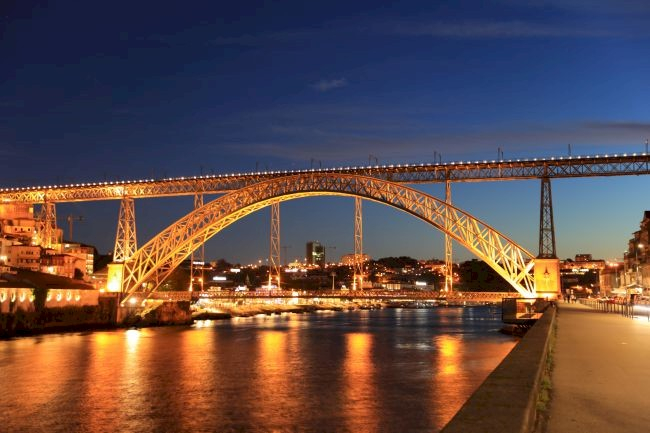 Sie "Ponte Dom Luís I" ist eine Bogenbrücke, die Porto und Vila Nova de Gaia verbindet. Die Brücke hat zwei Ebenen: Oberhalb des Bogens führt sie auf zwei Spuren Straßenbahnverkehr, auf der unteren Ebene bildet sie eine Straßenverbindung. Die untere Ebene verbindet die Bogen-Endpunkte und hängt an der Straßenbahnbrücke. Beide Ebenen sind für Fußgänger begehbar. Die Brücke wurde gebaut nach Plänen von Théophile Seyrig. Seyrig hatte mit seinem Lehrmeister Gustave Eiffel bereits die 500 m weiter flussaufwärts gelegene Brücke "Ponte Maria Pia" von 1875 bis 1877 gebaut. Die Brücke wurde am 31. Oktober 1886 von König Ludwig I. (Dom Luís I), dessen Namen sie trägt, eingeweiht.