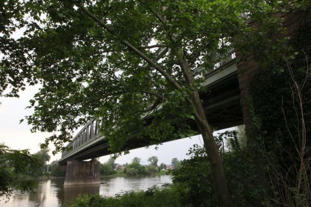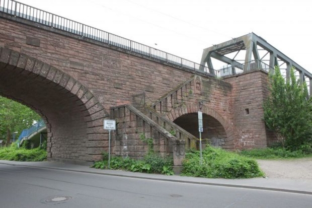 Eisenbahnstrecke Mainz-Wiesbaden, alte Kaiserbrücke (offizieller Name Nordbrücke) wurde 1901-1904 erbaut, 1945 von der Wehrmacht gesprengt, 1955 gründlich umgebaut.