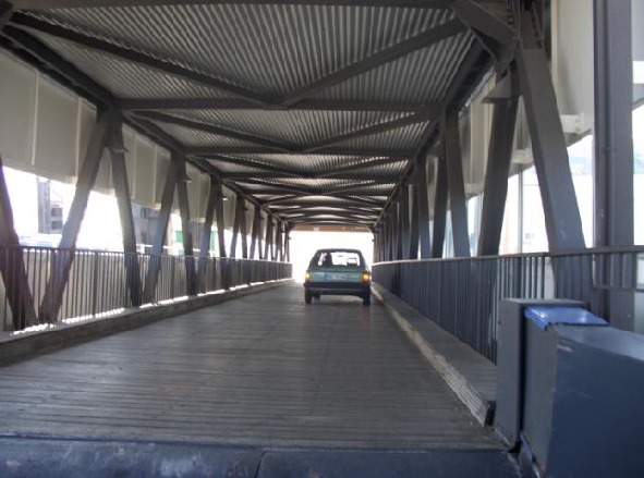 Fachwerkbrücke, Bogenbrücke, Bogen über der Fahrbahn