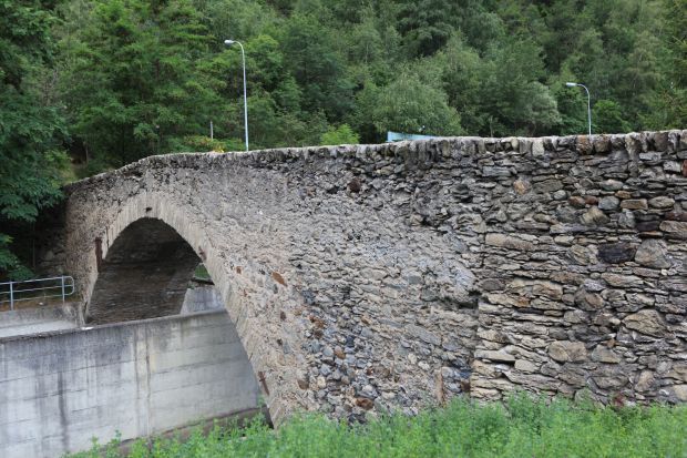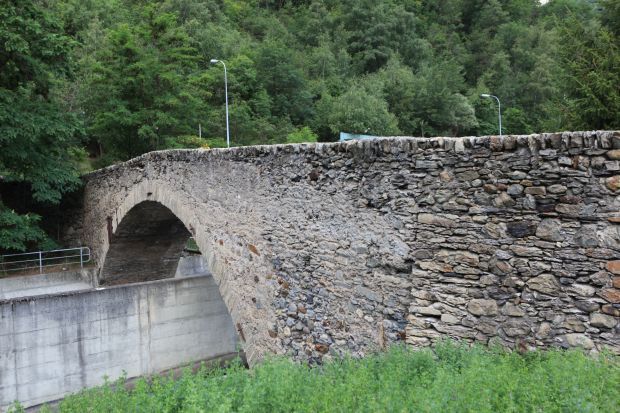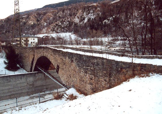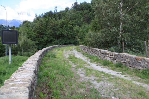 Als Teil der Talstrasse wurde diese Brücke um 1324 erstellt. 1544 berichtete eingewisser Johannes Stumpf von einer "schönen steinin prucken von einem schwybogen gemachtet". Nach 1766 war die Rede von Aufwendeungen für ein Wachhaus bey der Massenbrug. (Zollstation). Am 1.Juni 1799 fand bei der Brücke der Verzweiflungskampf der Gommer und Mörjer gegen die Franzosen statt.
