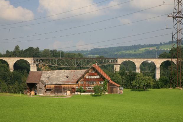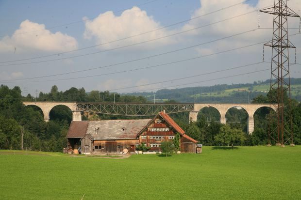 Die überführende Bahnlinie ist die frühere Bodensee - Toggenburgbahn
