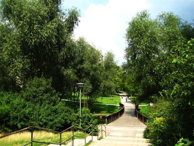 Fußgängerweg im Park am Springpfuhl