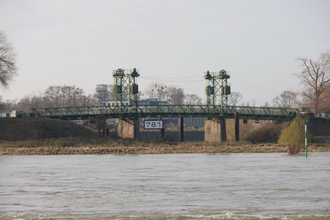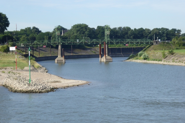 Rheinpreußenhafen-Brücke, Bl. v. Rhein