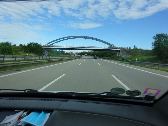B158 Bundesstraßenbrücke / A 10 Autobahn Berliner Ring, im Bildvordergrund