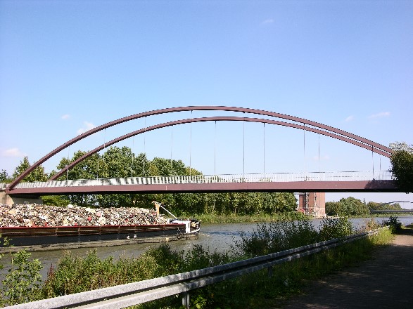 Bogenbrücke, Bogen über der Fahrbahn, Stabbogenbrücke