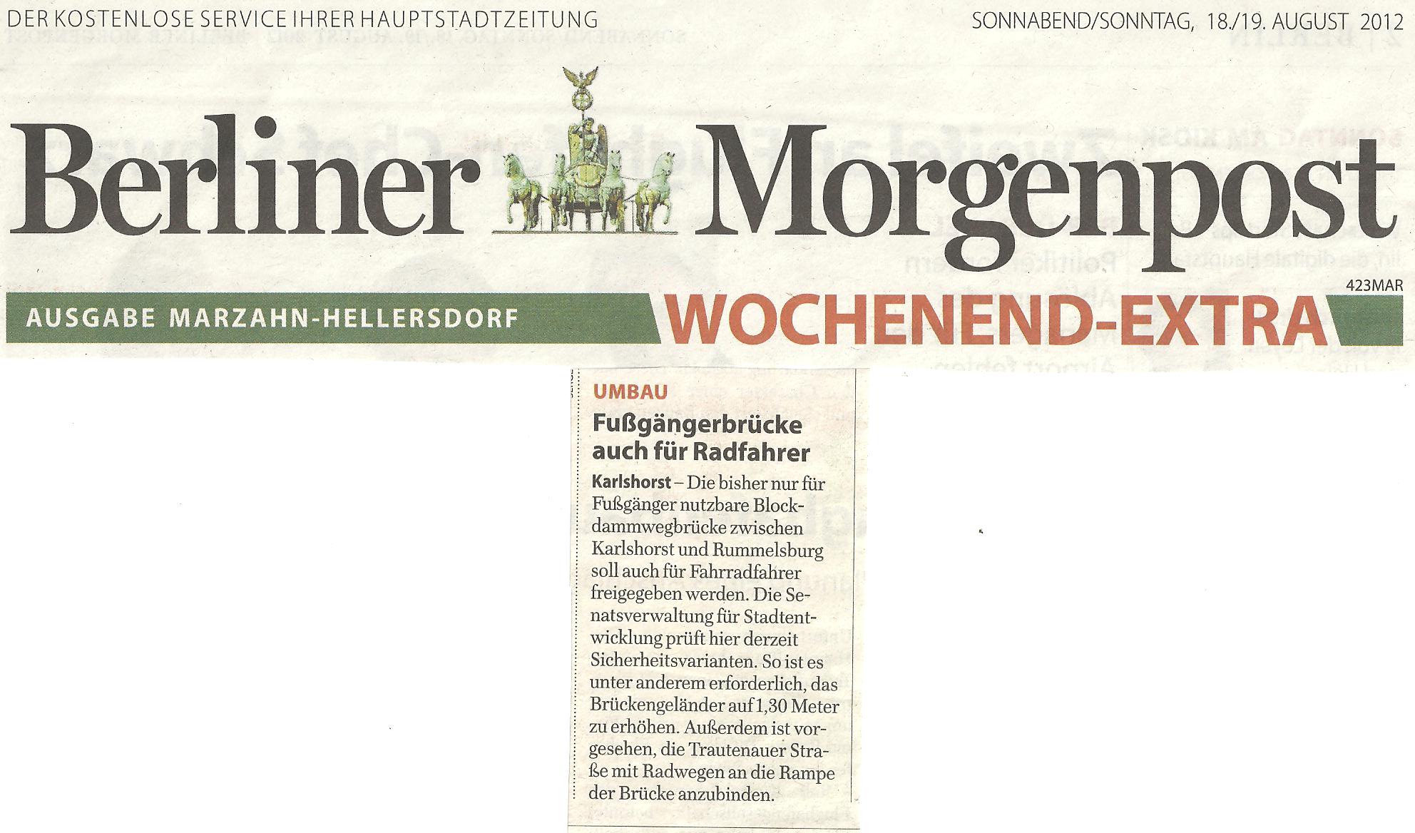 Berliner Morgenpost vom 18. / 19. 8. 2012