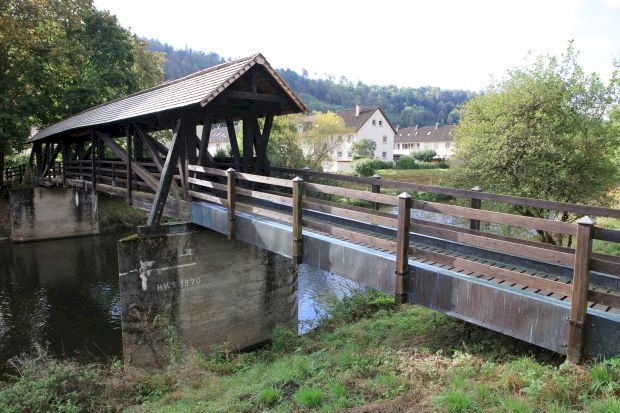 Covered Bridge, gedeckte Holzbrücke, Fachwerkbrücke (Multiple queenpost, Hängewerk)
