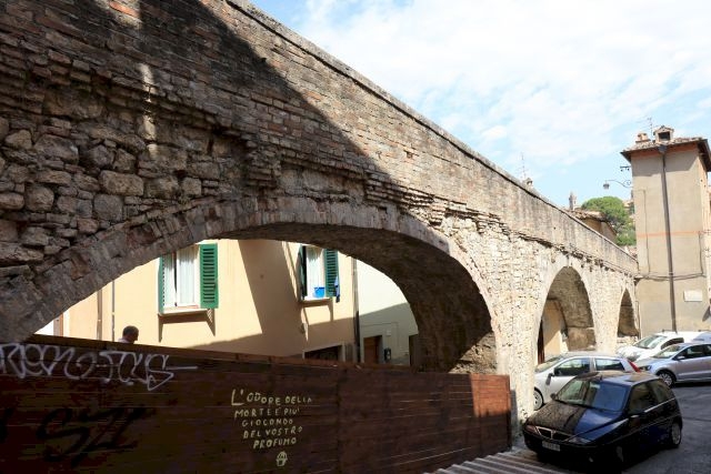 dieser Aquädukt brachte Wasser vom 3 km entfernten Berg "Monte Pacciano" ins Zentrum der Stadt (vor allem für die berühmte "Fontana Maggiore", vielleicht den schönsten mittelalterlichen Brunnen Italiens); seit dem Jahr 1799 außer Betrieb