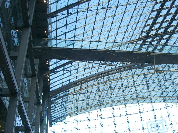 Fußwegbrücke zwischen den Bügelbauten im Berl. Hauptbahnhof