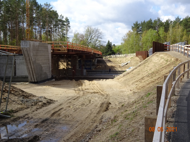im linken Bildbereich die neu Fahrwegbrücke im Bau