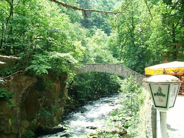 Die Jungfernbrücke am Gasthof „Königsruhe“. Der Sage nach dürften sie nur Jungfrauen überqueren, damit sie nicht einstürzt. Später ließ der Gastwirt ein Glöckchen läuten, sobald eine Jungfrau die Brücke betrat (Quelle: Wikipedia).