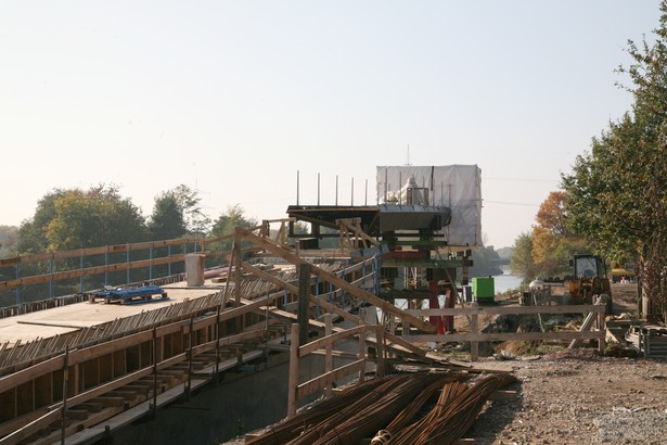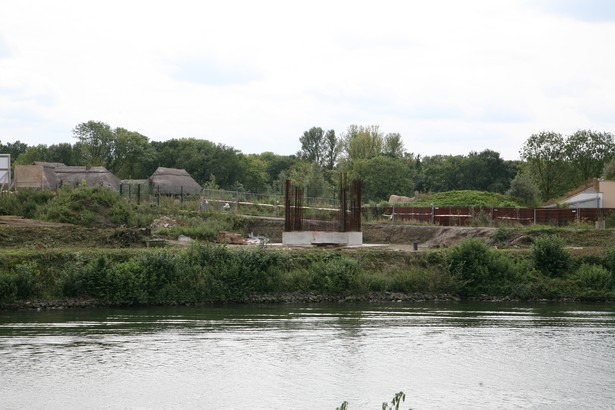 Am 25.10.2008 wurden die Stahlteile über den Kanal mit einem Schwimmkran montiert.