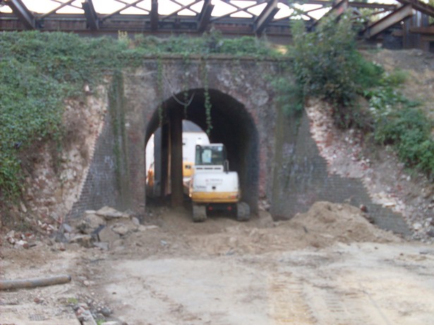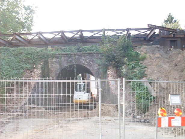 in 2008 wird die alte Gewölbebrücke aus Ziegelstein durch einen Neubau ersetzt. Dieser wird mittels Einpressvorgang in den Bahndamm geschoben