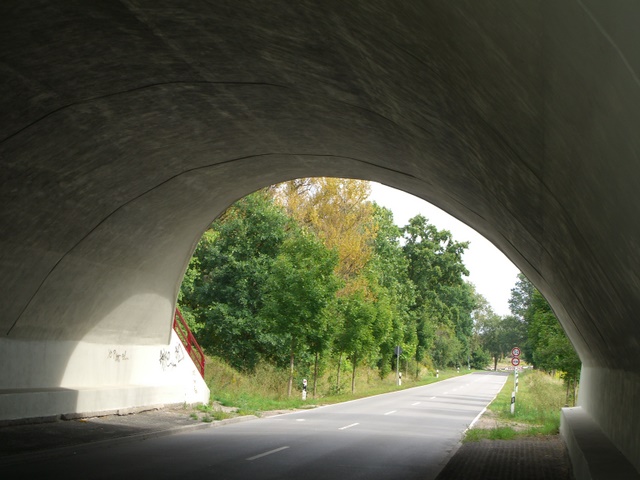 Segmentbogenbrücke unter der Autobahn