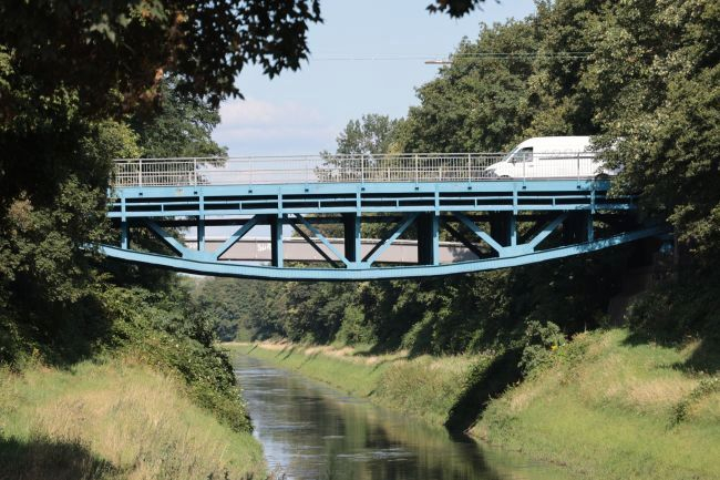 im Jahr 1911 von der Emschergenossenschaft (EG) erbaut. Die Stützweite der Brü-