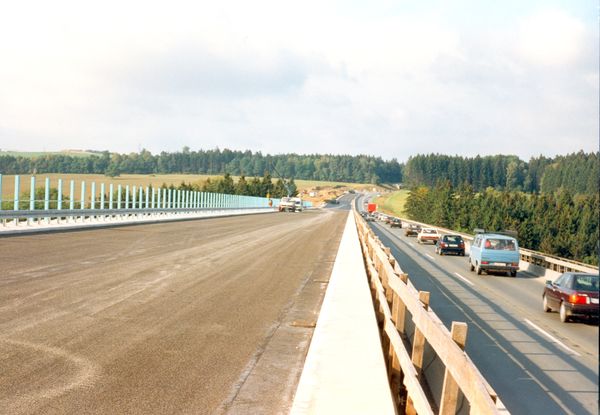 Die A72 wurde bis 1939 von Zwickau nach Plauen nur mit zwei Fahrbahnen ausgestattet, wobei die Brücken bis auf eine Ausnahme schon für den 4-streifigen Verkehr gebaut wurden. Nach der Wende gab es durch den starken Verkehrszuwachs viele tödliche Verkehrsunfälle, bis dann 1992 mit dem Ausbau begonnen wurde. Die vorhandenen Überführungen waren auf den neuen Autobahnquerschnitt 4 Fahrspuren plus Standstreifen nicht ausgelegt, so dass alls Bauwerke um- bzw. neu zu bauen waren. Bei den Talbrücken wurde auf den vorhandenen Überbau im Taktschiebeverfahren ein neuer Spannbetonüberbau geschoben. Zuerst auf dem ungenutzten Teil, dann wurde die alte Fahrbahn abgerissen und auch durch einen neuen Überbau ersetzt.