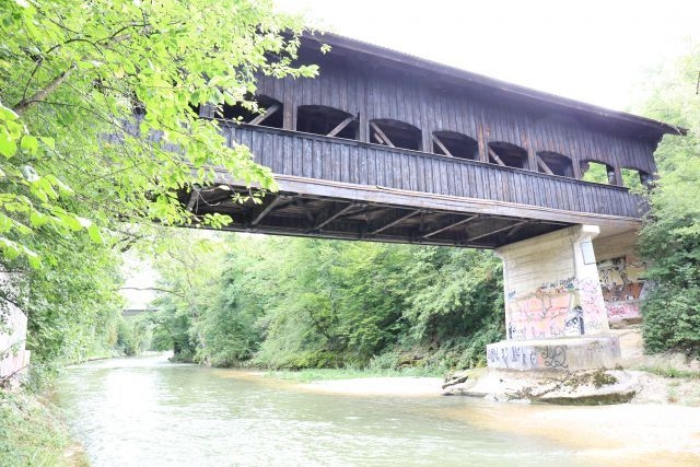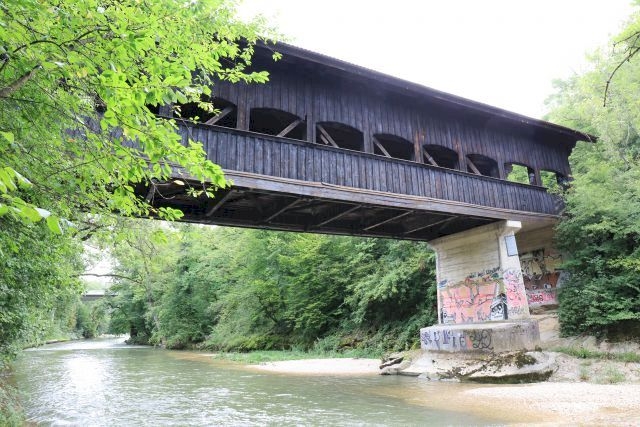 Covered Bridge, gedeckte Holzbrücke Fachwerkbrücke