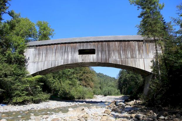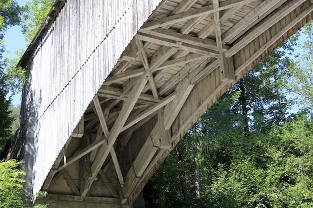 Covered Bridge, gedeckte Holzbrücke, Hängesprengwerk