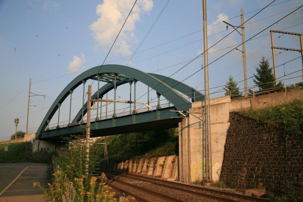Bogenbrücke, Bogen über der Fahrbahn