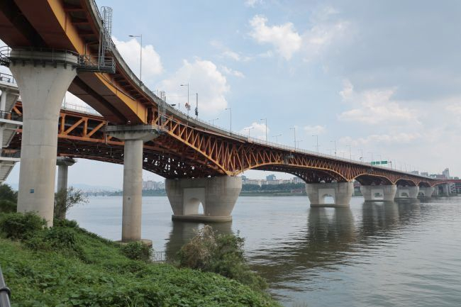 Erste Seongsu-Brücke wurde 1979 fertig gestellt; Einsturz eines Teilstücks aufgrund unsachgemäßer Ausführung der Schweißnähte. Reparatur bzw. zusätzlich Verstärkung und Erweiterung von 4 Spuren auf 8 Spuren sowie Austausch der Betonfahrbahn gegen Stahlplatte (Gewichtsreduktion!) - siehe auch "Katastrophen" in dieser Datenbank.