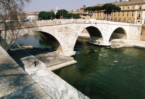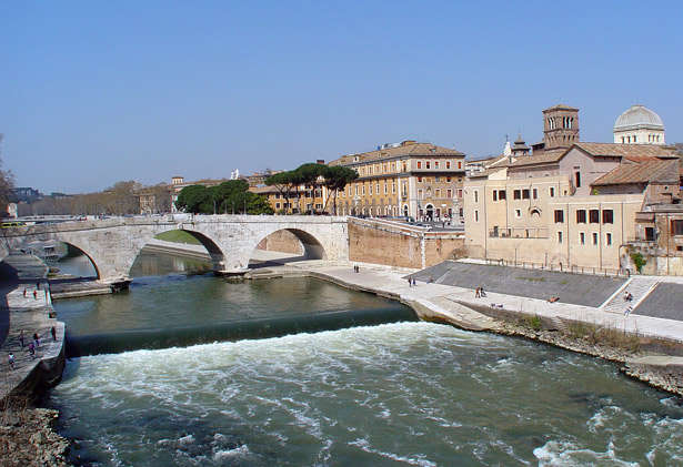 Die antike "Pons Cestius" verbindet als "Zwillingsbrücke" der Ponte Fabricius die Tiberinsel mit dem Stadtteil Travestere. Erbaut von Lucio Caio Cestio Epulone. Mehrmals restauriert (152, 370 von den beiden Kaisern Valentiniano und Valente, 1193).
