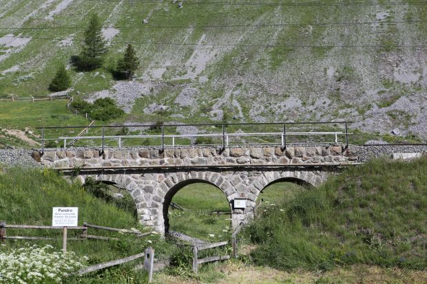 Eisenbahn (RhB Strecke S-chanf - Cinuos-chel-Brail Km 106,595)