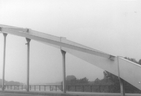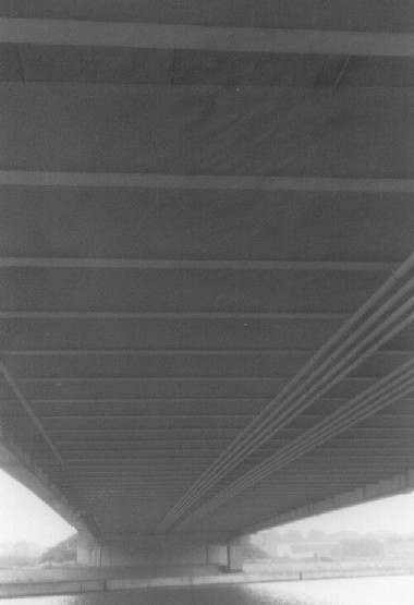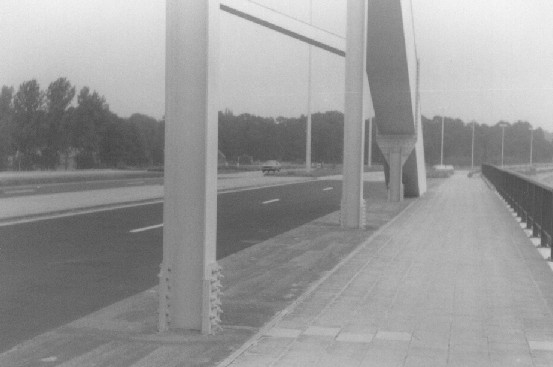 Bogenbrücke, Bogen über der Fahrbahn, Stabbogenbrücke