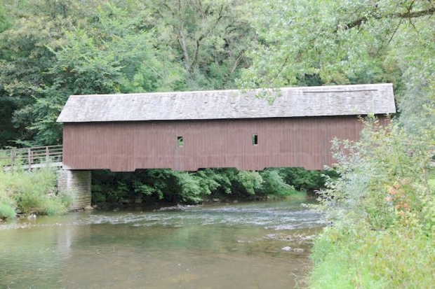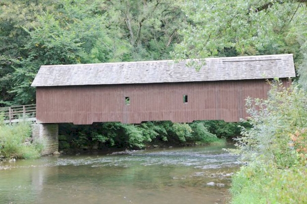 Covered Bridge, gedeckte Holzbrücke, Fachwerkbrücke (Multiple Kingpost, Hängewerk)