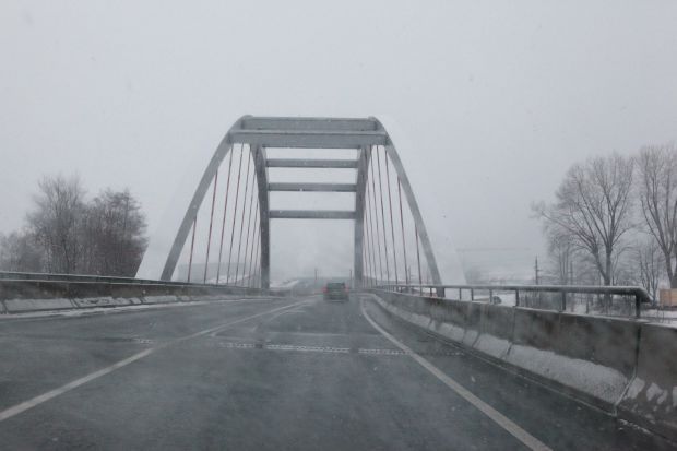 Bogenbrücke, Bogen über der Fahrbahn, Stabbogen