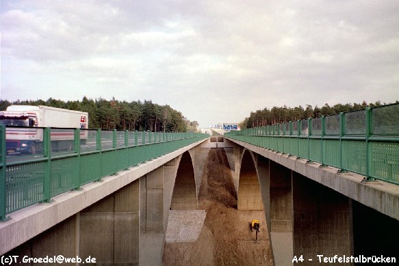 Mit dem sechsstelligen Ausbau der BAB A4 zwischen Jena und dem Hermsdorfer Kreuz ist die Teufelstalbrücke die östlichste Großbrücke in diesem Bereich.