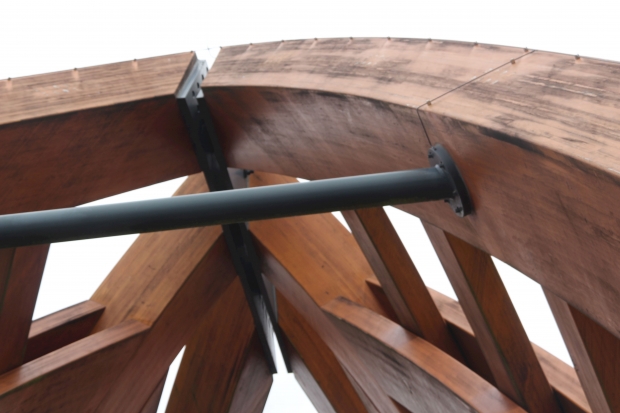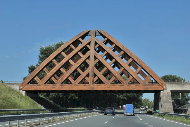 Das Holzfachwerk ist 15 m hoch, die Fahrbahn ist aus Stahl.