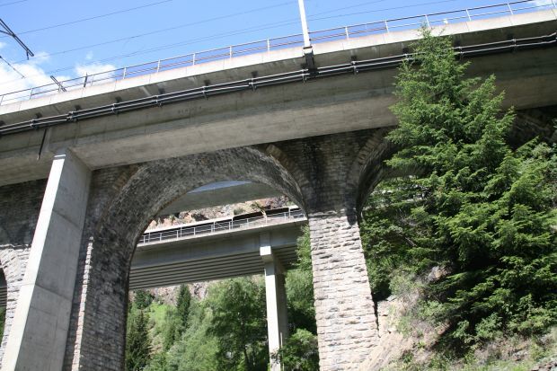 Bogenbrücke, Bogen unter der Fahrbahn, Balkenbrücke