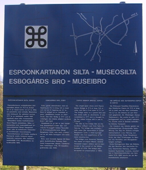 Die älteste in Betrieb befindliche Brücke in Finnland. Die Grundsteinlegung im Jahre 1775 von König Gustaf III aus Schweden (Erinnerungsstein). Museumsbrücke seit 1982.