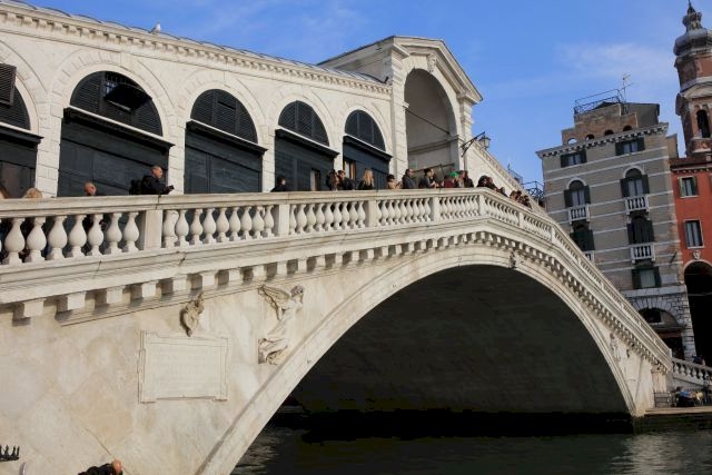 Hier stand vorher eine hölzerne Klappbrücke. Für den Bau einer neuen Brücke wurden von Michelangelo, Palladio und da Ponte Entwürfe eingereicht. Antonio da Ponte hatte den Dogenpalast nach einem Brand wieder aufgebaut und erhielt den Auftrag, obwohl er bereits 75 Jahre alt war. Die Widerlager sind auf jeweils 6000 Erlenstämmen gegründet. Gerüchte über mangelnde Standsicherheit führten zur Unterbrechung des Baues. Gutachten bestätigten jedoch die Sicherheit. Bald nach ihrer Fertigstellung überstand die Brücke ein Erdbeben ohne Schaden. Die Brücke erlaubte die Durchfahrt von großen Prachtgondeln und ist bis heute unverändert.