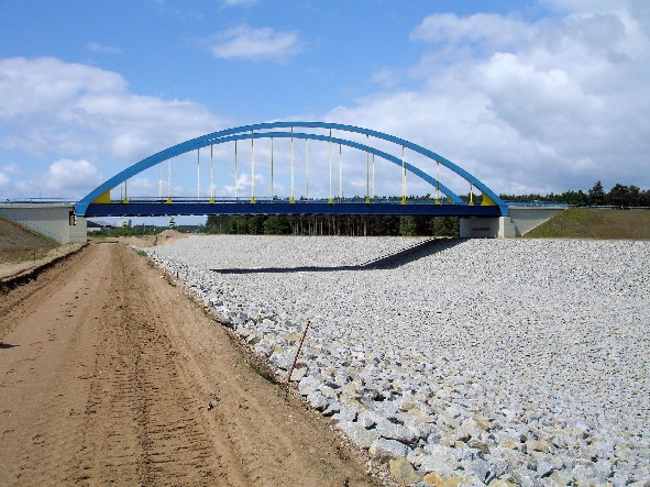 Bogenbrücke, Bogen über der Fahrbahn, Stabbogenbrücke