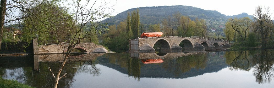 Im Süden Jenas, zwischen den Ortsteilen Altlobeda und Burgau wölbt sich heute wieder eine Natursteinbrücke über die Saale. Der Fluss hatte sich hier auf einer Breite von ca. 300 m zwischen zwei Felsspornen seinen Weg gesucht. Von dem im 18. Jhd. zuständigen Verwaltungsbeamten Herrn Goethe wissen wir, dass sich die Saale in drei Arme teilte und ihre Lage relativ ungeniert auch veränderte. Die bekannten Handelswege umgingen möglichst diese feuchte Niederung. Doch die beiden Orte waren wirtschaftlich verbunden und die Lobedaer mussten von amtswegen nach Burgau, um auch zur dortigen Mühle zu gelangen. Sie nutzten dafür vermutlich eine Furt, die bereits von den ehemals dort siedelnden Slawen angelegt worden war. Die Ansprüche wuchsen und der Übergang wurde im 15. Jhd. mit Knüppeldämmen und einer Holzbrücke gesichert. Ab 1491 wurde nachweislich an der Errichtung einer Steinbogenbrücke gearbeitet. Es folgte eine lange und unruhige Bauzeit. Erst 1744 wird die Brücke in ihrer vollen Länge mit Brüstung und Straßenbelag fertiggestellt. Geschuldet ist die lange Bauzeit der nur lokalen Bedeutung und den geringen finanziellen Mitteln des Landesfürsten. Ein Großteil der Leistungen erfolgt als Frondienst, einschließlich der Lieferung von Steinmaterial. Tiefe Fahrspuren beweisen auch eine lange direkte Befahrung der Gewölbebrücken, was bestimmt nicht einfach war. Hochwasserschäden und Zerstörungen im 30-jährigen Krieg fallen in dieser Zeit. 1828 wird die Brücke dann erweitert, indem man die Brüstung abbricht und das Geländer mittels Kragsteinen nach außen schiebt. In dieser Gestaltung kennen wir das Bauwerk. Auf der Burgauer Seite entwickelte sich ein kleines urbanes Zentrum mit Mühle, Schmiede und Gaststätten. Es war und ist noch heute ein beliebtes Ausflugsziel.