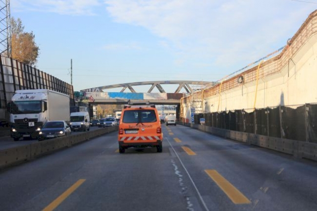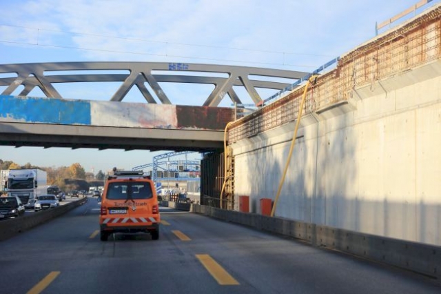 Für die Erweiterung der Autobahn auf 6 Spuren wurde zwischen dem 23.03.2012 und dem 26.03.2012 eine neue Fachwerkbrücke eingefahren.