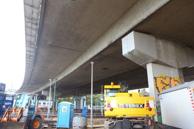 Die Brücke aus dem Jahre 1972 besteht aus zwei Teilbauwerken (beides sind einzellige Hohlkastenträger):
