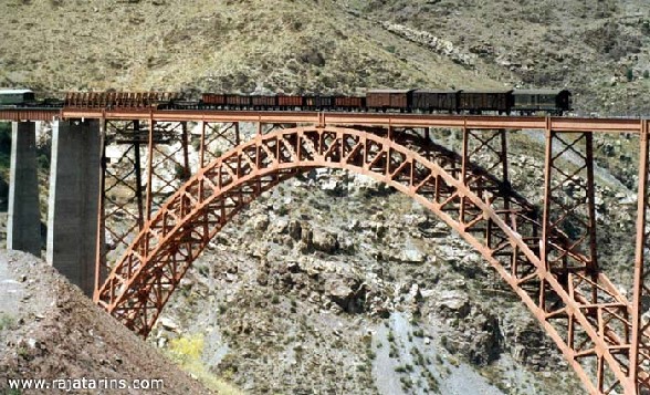 Die insgesammt 3655 Tonnen schwere Stahlkonstruktion wurde in Amerika hergestellt und in Teilen mittels Schiff und Eisenbahn an die Baustelle transportiert. An dieser Stelle wurde eine Seilbahn gebaut mit Stahlseilanker an einer Seite in den Berg verankert und an die anderer Seite an einem Festpunkt in Turmform.